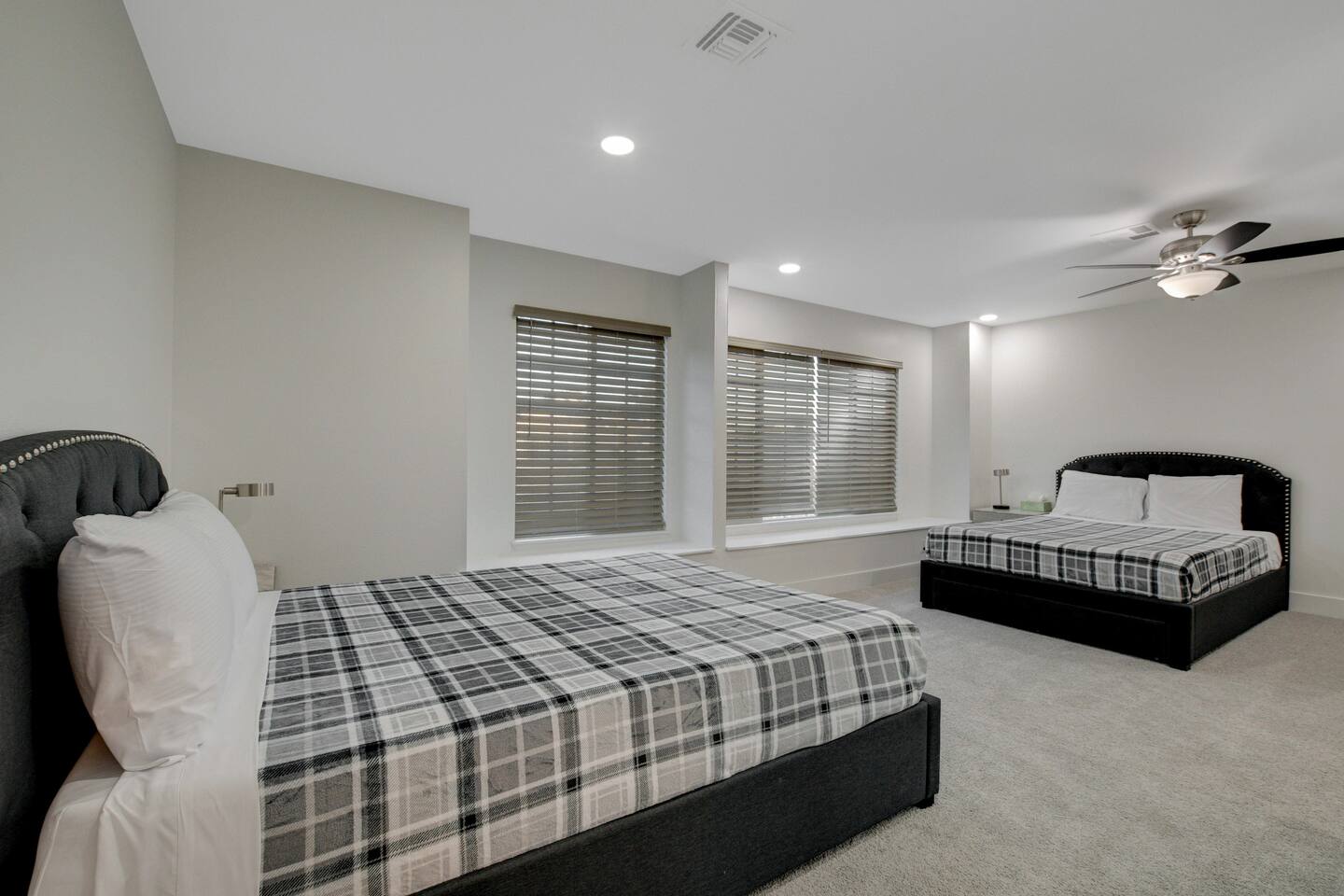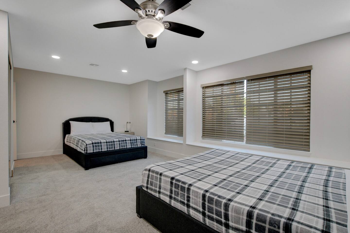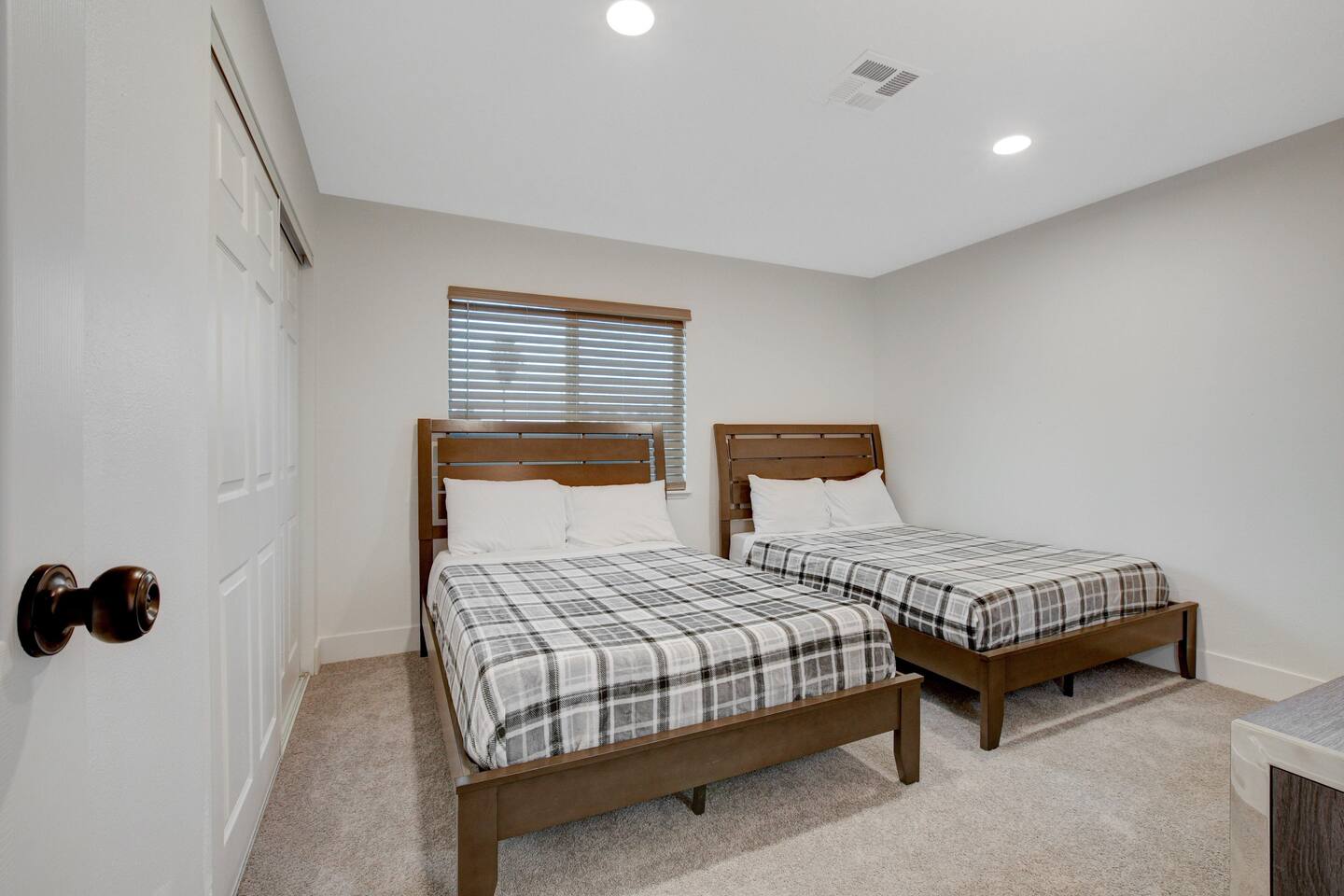 Welcome to YOUR Desert Home!! ✭ ✭ ✭ ✭ ✭ We are so pleased that you have taken the time to consider us for your magical stay in Las Vegas! This cozy, spacious home is equipped with all of the amenities required to make your stay as comfortable as possible with 4 bedrooms, 2.5 bathrooms, and sleeping arrangements for 17 people (15 adults & 2 kids). The pool goes as deep as 8ft with a lovely spa attached for those who crave relaxation and lawn chairs for the perfect nap. Your home away from home is just ✓4.4 miles away from the famous Las Vegas Strip ✓2.1 miles away from Chinatown ✓6.0 miles away from premium outlets ✦KITCHEN✦ Prepare all of your delicious meals using our SPACIOUS kitchen. The lovely Keurig machine is available to start every morning with a fresh coffee. Attached is a dry bar stocked with glassware accompanied by two highchairs, talk about a GOOD TIME! Dining table ready with placemats to enjoy all of your family recipes! ✓ Pots & pans ✓ Keurig coffee machine ✓ Refrigerator/ freezer ✓ Microwave ✓ Dishwasher ✓ Utensils ✓ Silverware ✓ Glassware ✓ Plates & bowls ✓ Stove ✓ Oven ✓ Toaster ✦LIVING ROOM✦ Sit back and relax on the oversized L-shaped couch while binge-watching your favorite Netflix shows! Rally up your friends and family for a night of board games around the living room table. ✓ Comfortable seating ✓ 50" TV with Netflix and airplay ✓ Boardgames for all ages ✓ Stylish coffee table ✦BEDROOMS - 4bedrooms ✦ Snuggle up in comfortable beds and pillows with soft linen and sheets. Ample closet and dresser space for your belongings including a walk-in closet in the primary bedroom. All bedrooms are equipped with 50" TVs (Netflix, AirPlay). Tune into your VEGAS SPIRIT with our RAIDERS and GOLDEN KNIGHTS themed bedrooms! ❉Primary: 2 Queens (sleeps 4 adults) ❉Room 2: 1 King (sleeps 2 adults and 2 children) - GOLDEN NIGHTS THEME ❉Room 3: 2 Full size (sleeps 4 adults) - RAIDERS THEME ❉Room 4: 1 full, 3 Twins (sleeps 5 adults) ❉❉ Total sleeping capacity: 17 (15 adults and 2 children) All bedrooms offer: ✓ Top quality pillows, linen & sheets ✓ Nightstand ✓ 50" TV ✓ Dresser ✓ Closet w/ hangers *Please ask for any special sleeping arrangement requests* Primary room has paper shades to help block out light. ✦BATHROOMS✦ Experience luxury with high-end "shower panels" equipped with massage jets. Both full bathrooms have this high-end technology. The primary bathroom offers lots of space and storage for you and your guests. Bathrooms stocked with essential toiletries. ✓ Standing showers ✓ Mirror ✓ Towels ✓ Hair dryers (2) ✓ Toilet ✓ Essential toiletries 1 towel per guest + 2 extra towels will be provided. contact us if extra towels are needededwd ✦OUTSIDE ✦ Relax after a fun day of exploring the sights of Las Vegas in Our Desert Home oasis backyard. HUGE pool, restful spa, spacious backyard, reclining chaise lounge chairs, outside table and BBQ! Watch the sunset as you lay beside the pool on the wonderful reclining chaise lounge chairs provided. Enjoy FRESH limes from our lime tree!! HEATING AVAILABLE: only SPA $150/ 8hr window (12hr window of your choice) - hot summer months (May-September) ✓ Pool -8ft ✓ Spa (attached to the pool) ✓ Table w/ chairs & umbrella ✓ Reclining chaise lounge chairs ✓ Gas BBQ PLEASE close umbrella when not in use and during high winds. ✦LOTS OF ONSITE PARKING ✦ The driveway fits 2 cars. The side of the house offers a COVERED parking space for 2 cars. On-street parking is also available. NO GARAGE ACCESS ✖ NO PARTIES/ EVENTS ✖ We truly wish you a wonderful time but out of respect for our neighbors and the safety of our home, we do not allow parties. Please be mindful of quiet hours after 9 pm. With this said, we want you to have a great time! ✖ NO SMOKING ✖ Please refrain from smoking inside the property. Any smoke odor presence will result in a $800 deep cleaning fee. ✖ NO PETS