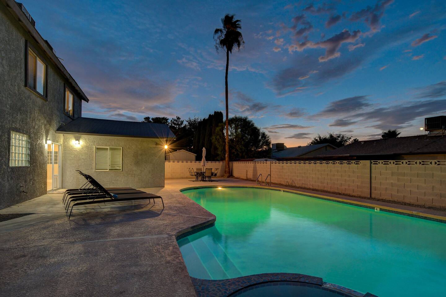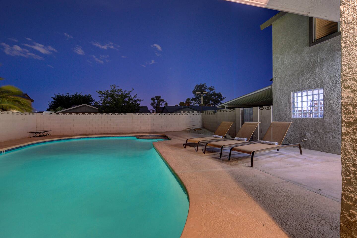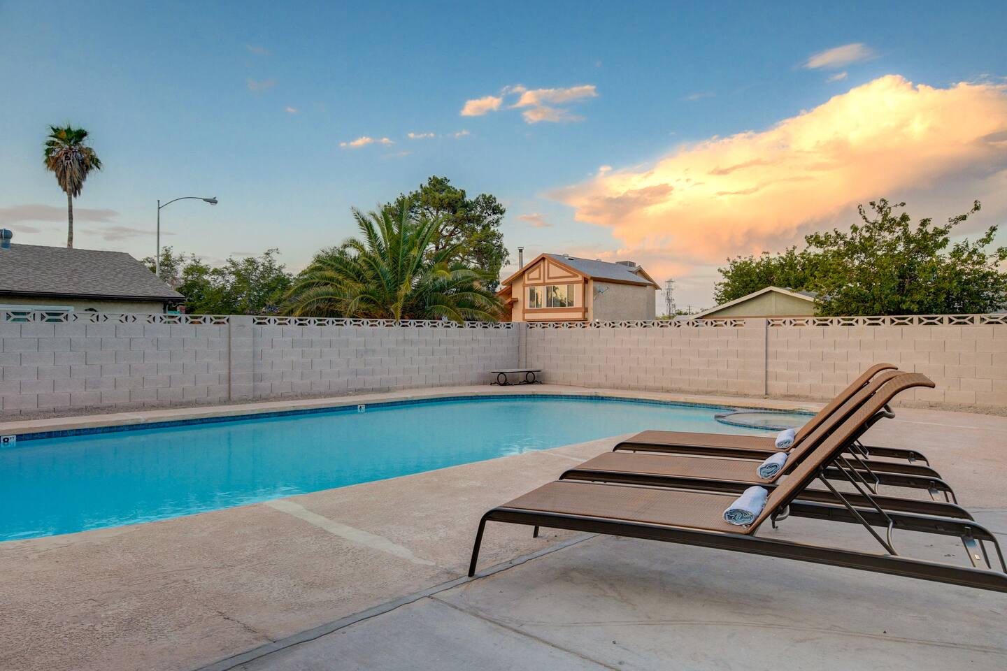 ✭ ✭Welcome to your home away from home in sunny Las Vegas! This spacious modern home offers 4 bedrooms, 2 full baths, 1 half bath, and PLENTY of beds for everyone to relax comfortably. Just 15 minutes from the Strip, the Airport, Raiders Stadium, Golden Knights Arena, Chintatown and the NEW Sphere, you’re close to the action while enjoying a peaceful stay. Enjoy the HUGE 8-ft deep pool, attached spa, loungers, and a welcoming kitchen with dry bar for all meals and memories. 🌴✨
