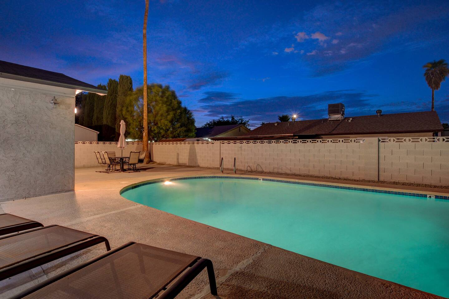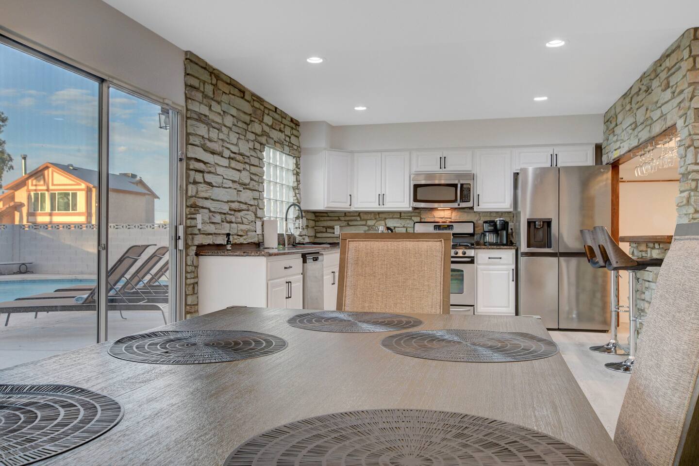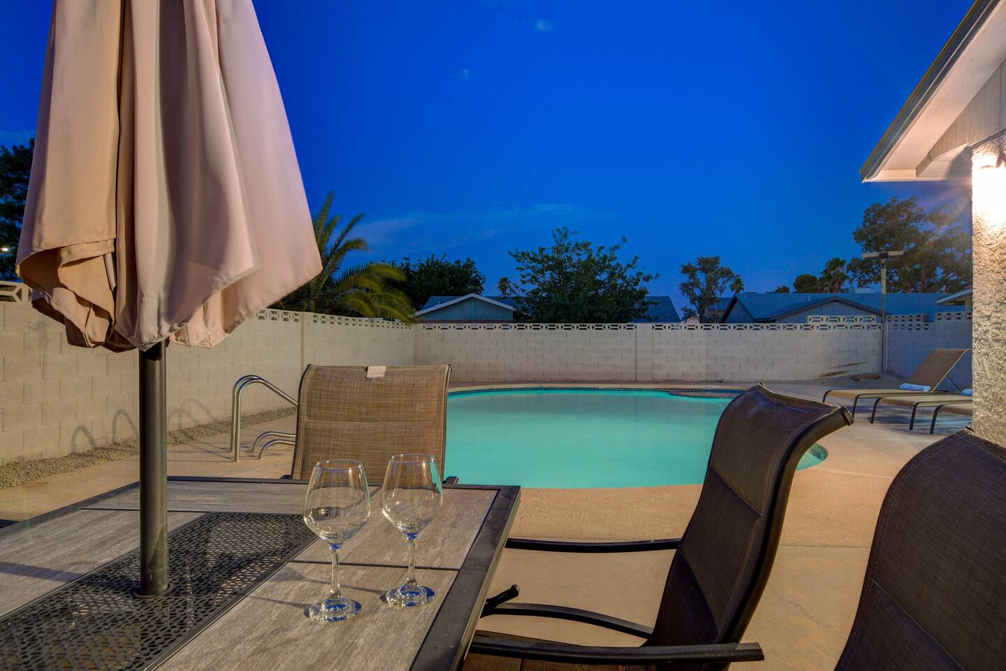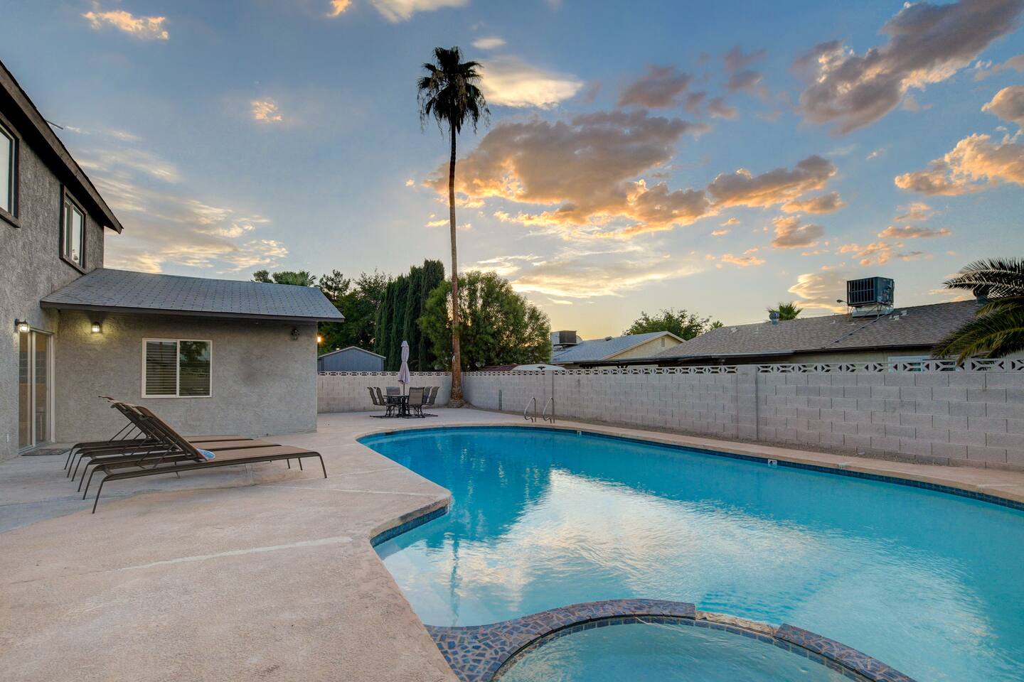 ✭ ✭Welcome to your home away from home in sunny Las Vegas! This spacious modern home offers 4 bedrooms, 2 full baths, 1 half bath, and PLENTY of beds for everyone to relax comfortably. Just 15 minutes from the Strip, the Airport, Raiders Stadium, Golden Knights Arena, Chintatown and the NEW Sphere, you’re close to the action while enjoying a peaceful stay. Enjoy the HUGE 8-ft deep pool, attached spa, loungers, and a welcoming kitchen with dry bar for all meals and memories. 🌴✨